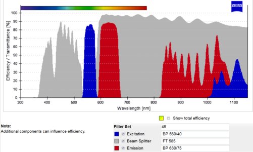 適合蔡司正置及倒置熒光顯微鏡。 BP560/50; FT585; BP630/75