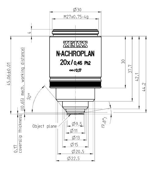 Objective "A-Plan" 20x/0.45 Ph2 WD=0.50mm (圖示是M27的口徑)
